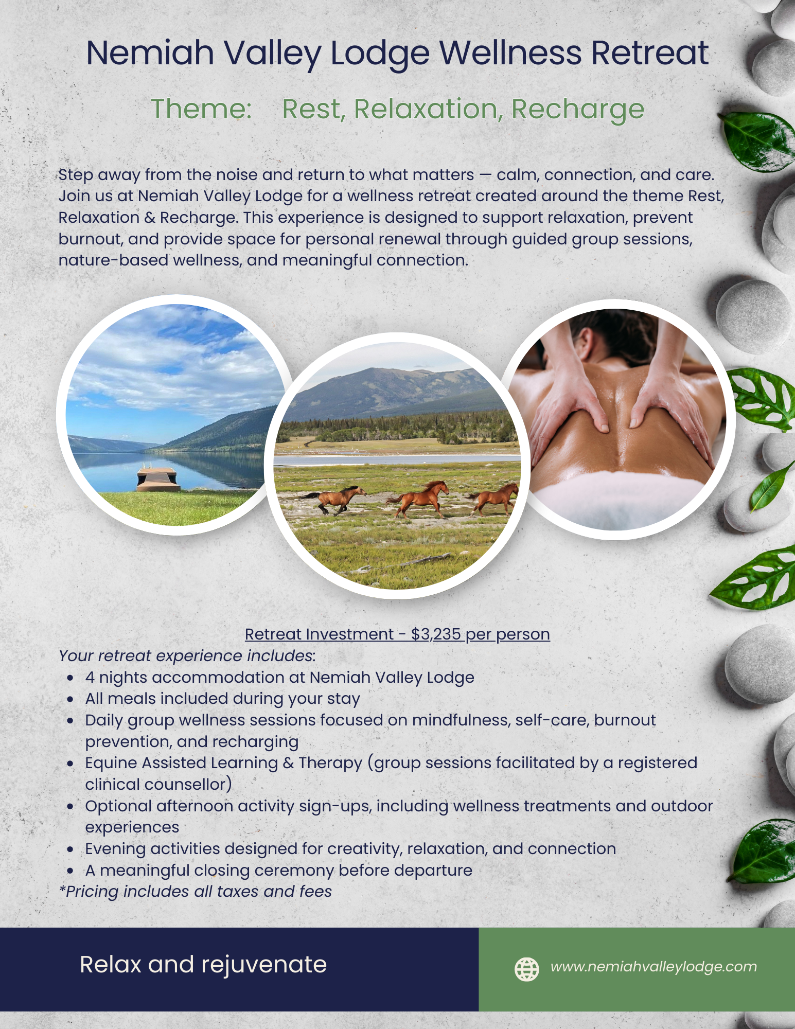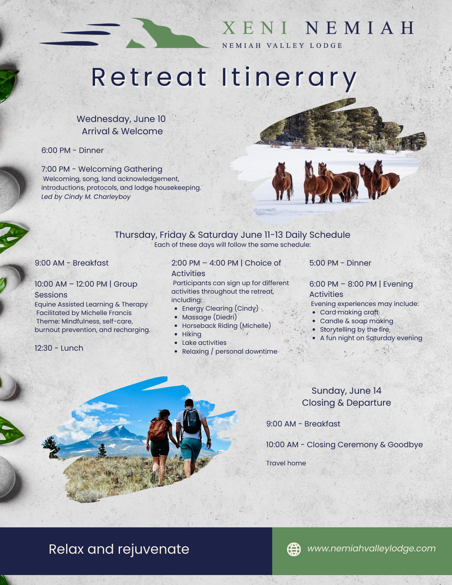 Reserve your spot today by emailing Info@NemiahValleyLodge.com